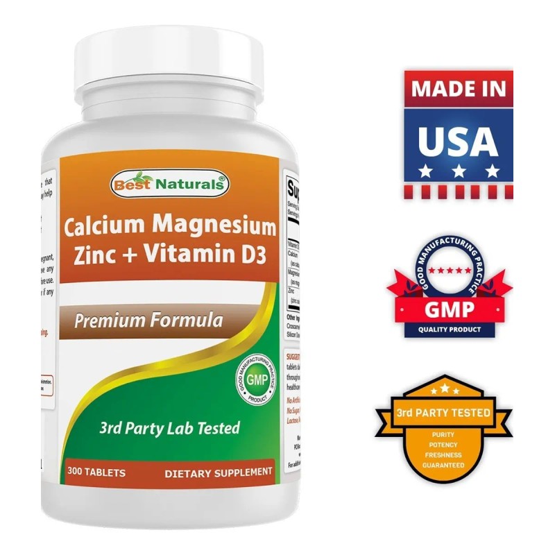 Best Naturals Vitamina D3 + Calcio + Magnesio + Zinc 300 Tabletas Formula Premium Sin Sabor