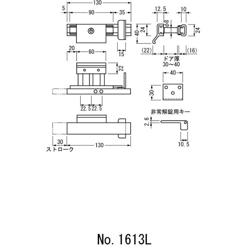 • Included mounting screws: Main unit, round plate small screws M4 x 30 mm, strike, counterwood screws 0.1 x 1.0 inches (3.8 x 25 mm)