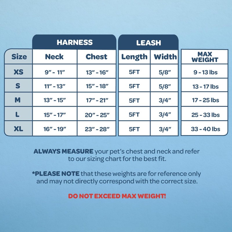 - All Weather Mesh Harnesses: Made with a soft, breathable air mesh, this lightweight pet harness is perfect for walks all year round