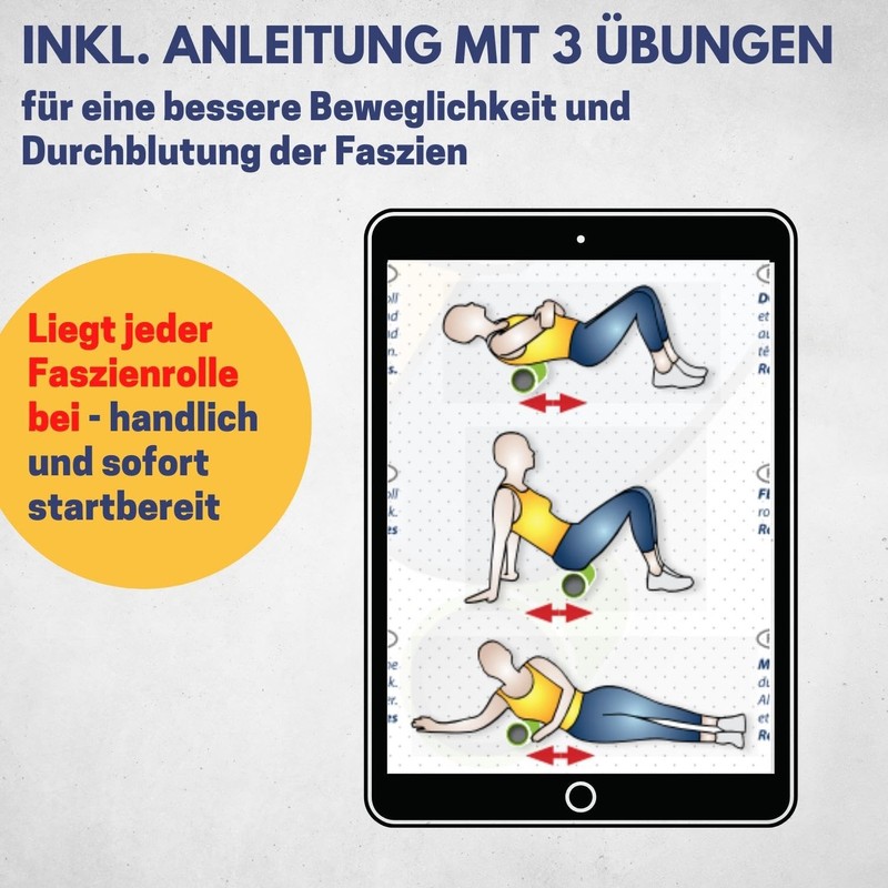 - Fascia roller facts – made of EVA foam, no plasticisers, length: 33 cm, diameter: 14 cm, weight: 900 g, for better mobility and blood circulation of the fascia, includes exercise instructions (English language not guaranteed)