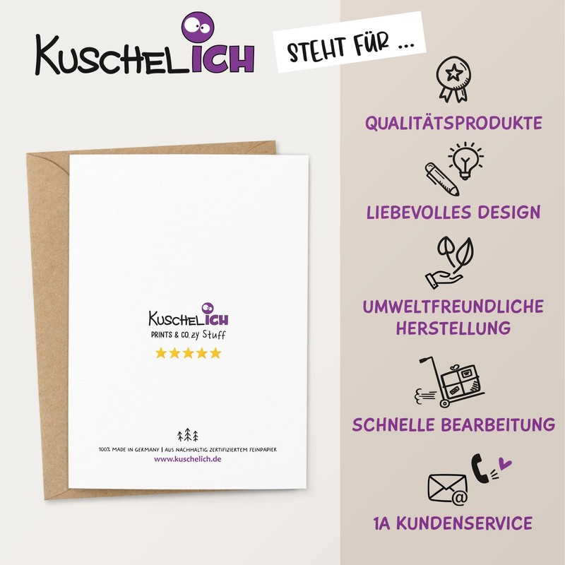 - Nachhaltig & lokal produziert: Unsere Karten werden klimafreundlich und regional hergestellt – für alle, die neben einem schönen Geschenk auch ein gutes Gefühl verschenken möchten.
