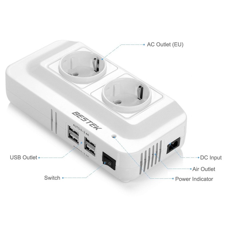 - 2 AC Steckdosen des konverters können für Ihr Notebook, TV, Ventilator, DVD, GPS, Lampe, Musikinstrument, Solarpanel oder andere elektronische Geräte Strom versorgen