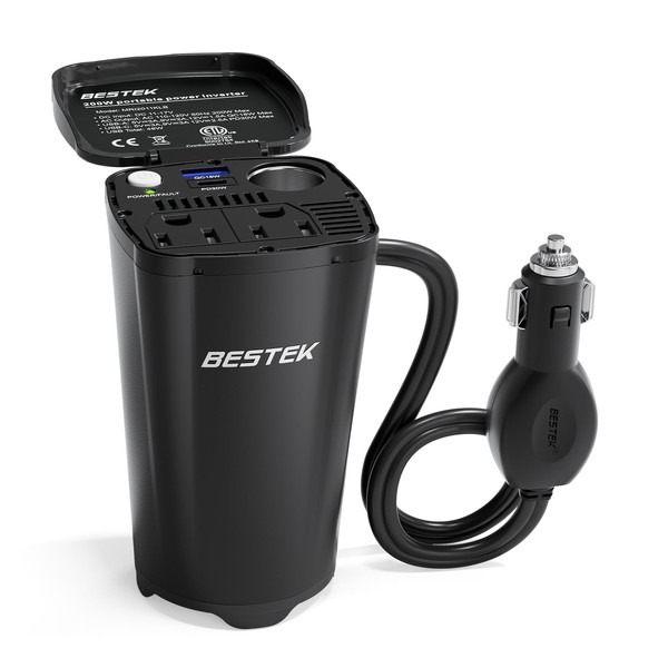 BESTEK 200W Power Inverter, 12V DC to 110V AC Car Plug Adapter Outlet Converter with [30W USB-C]/USB-Fast Charger(18W) / Dual AC Outlets/car Charger for Laptop | BESTEK