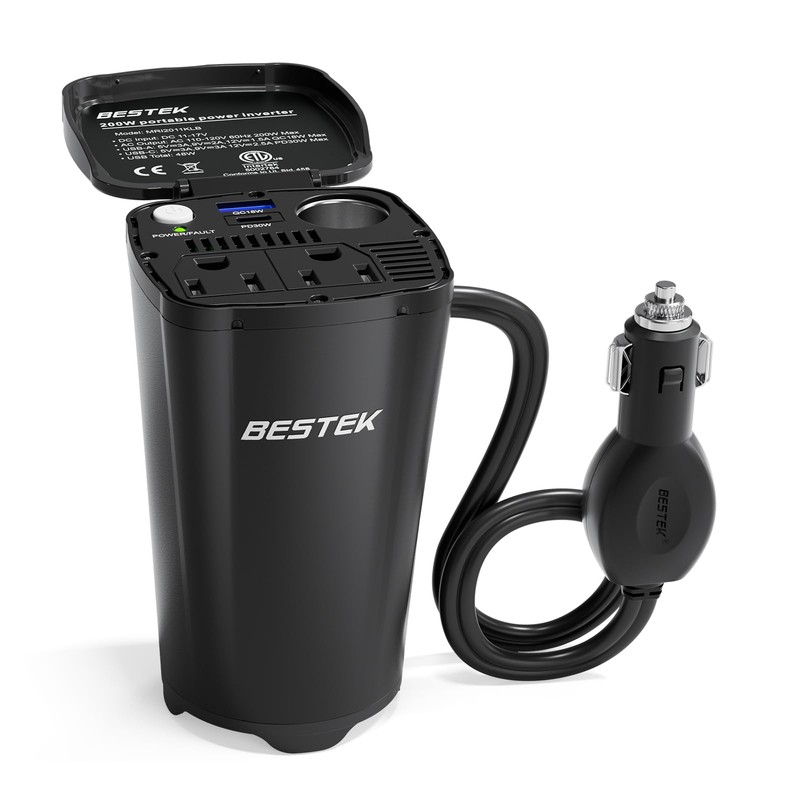 - 【Lightweight and Space Saving】Compact(3.18*2.94*5.60 inch) and lightweight(0.97Ib) design that can fit into the cup holder of the vehicle, making it more convenient than other power inverters. Perfect for vacations, road trips, work trips, and camping, ensuring you stay connected and powered wherever you go on your journey.