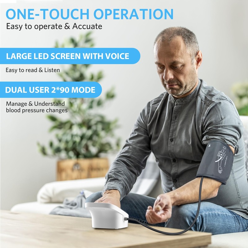 - One-Touch Operation: Designed for simplicity, the one-button start feature enables effortless operation. An integrated voice announcement system provides real-time guidance and vocalizes results instantly, catering to elderly users and those with visual impairments. Automatic pressurization and depressurization eliminate manual adjustments, streamlining the entire process for stress-free monitoring.