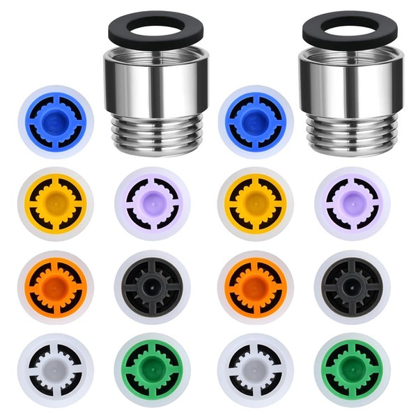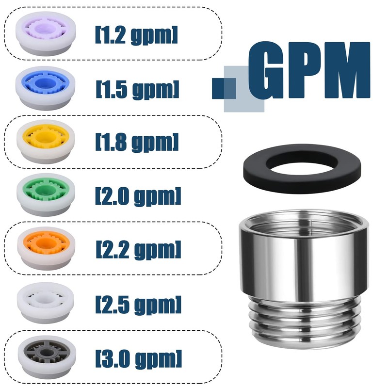 - Different Water Flow Rate - You can pick the proper water flow according to the color of water flow restrictors, the reducing valves are: Purple (1.2 gpm), Blue (1.5 gpm), Yellow (1.8 gpm), Green (2.0 gpm), Orange (2.2 gpm) and White (2.5 gpm) & Grey (3.0 gpm).