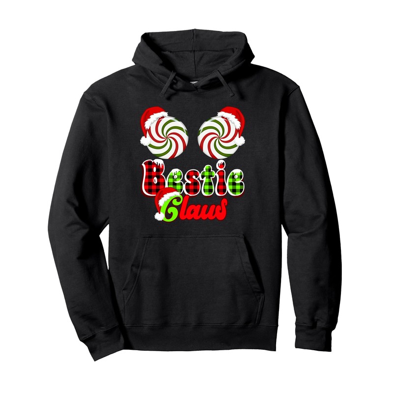Bestie Claus Couples Peppermint Candy Cane Christmas Plaid Pullover Hoodie