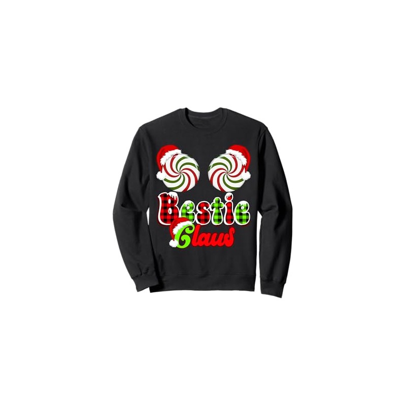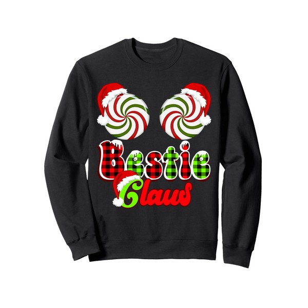 Bestie Claus Couples Peppermint Candy Cane Christmas Plaid Sweatshirt