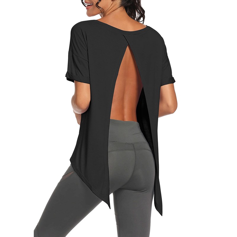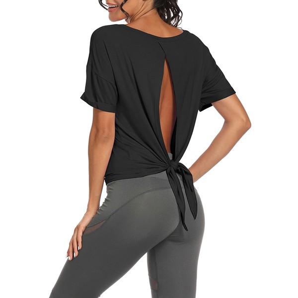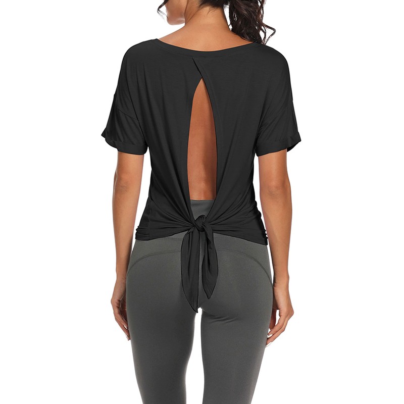 Bestisun Womens Workout Tops Short Sleeve Open Back Athletic Tank Tops Backless Workout Tops Black S