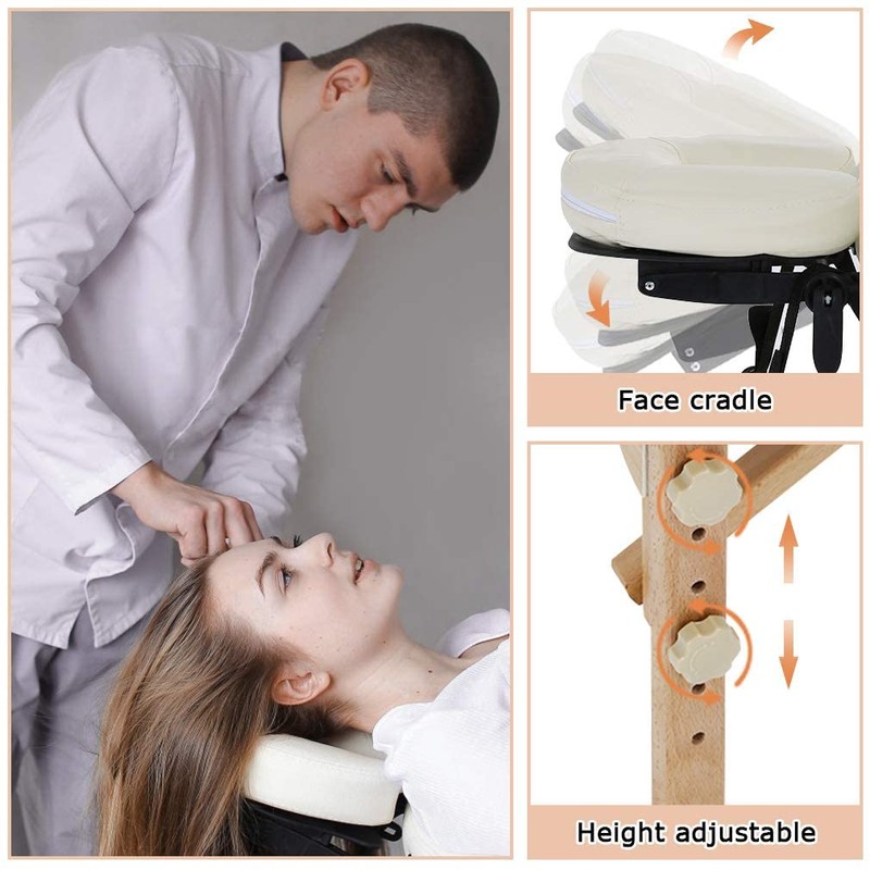 - HUMANIZED HEIGHT ADJUSTABLE:The every sturdy feet of the massage bed are equipped with height-adjustable knobs, which can be adjusted to massage table height by turning the button. The massage table height adjusted from 24" to 31".The simple height adjustment method is convenient for the masseur to work better with spa bed.Fold massage tale massage bed portable massage table.