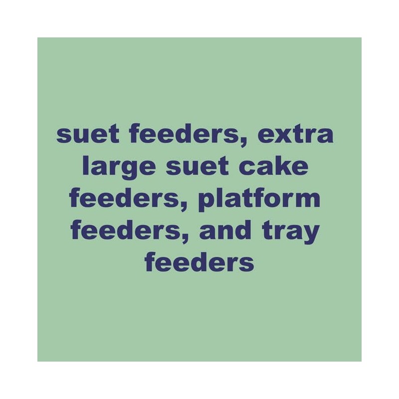 Feeder Options: suet feeders, extra large suet cake feeders, platform feeders, and tray feeders