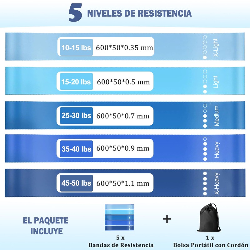 BestoU Ligas de Resistencia para Ejercicio Bandas de Resistencia 5PCS Ligas Elásticas Resistencia para Yoga, Pilates, Gimnasio, Fisioterapia Estiramientos Ejercicio en Casa con Bolsa con Cordón (Azul)