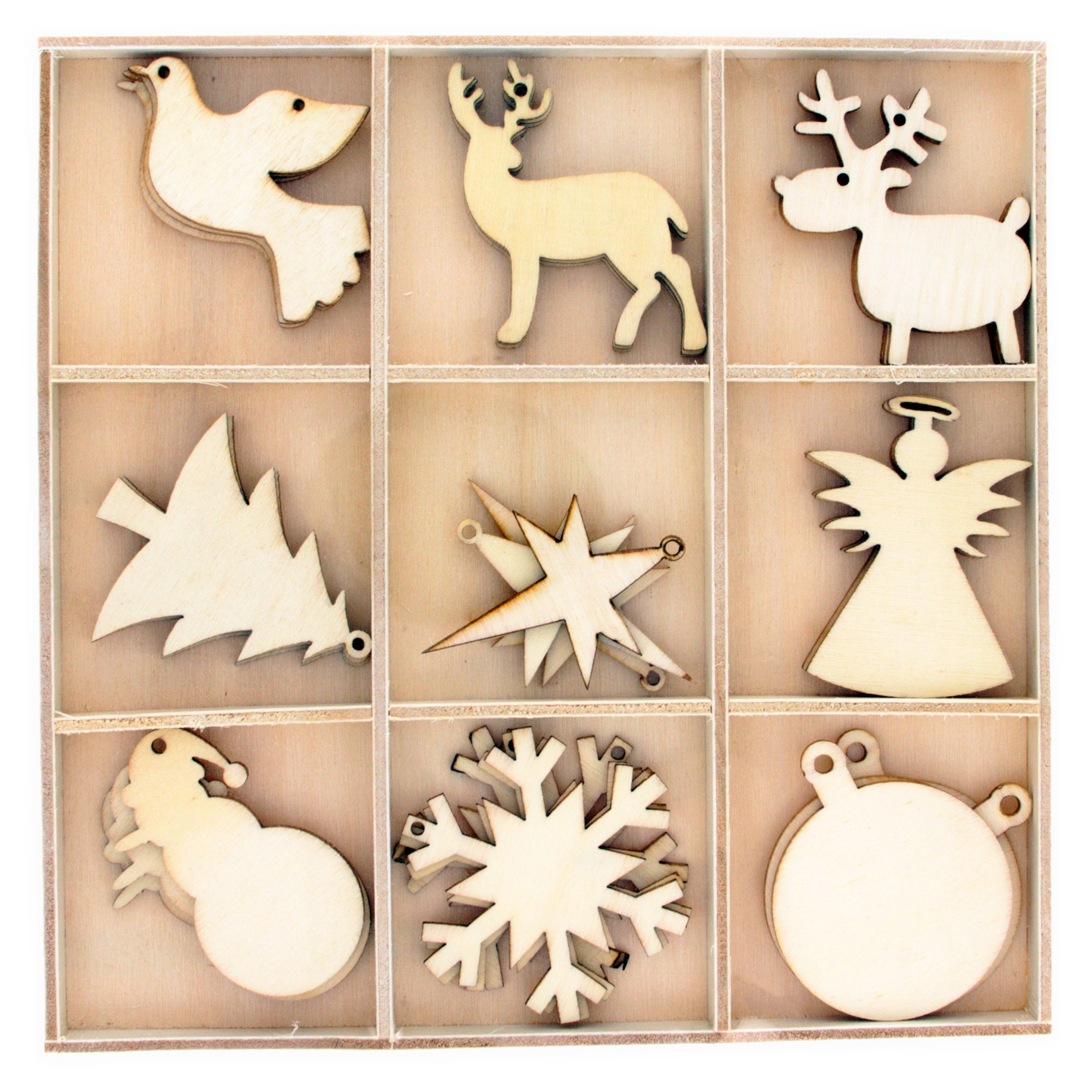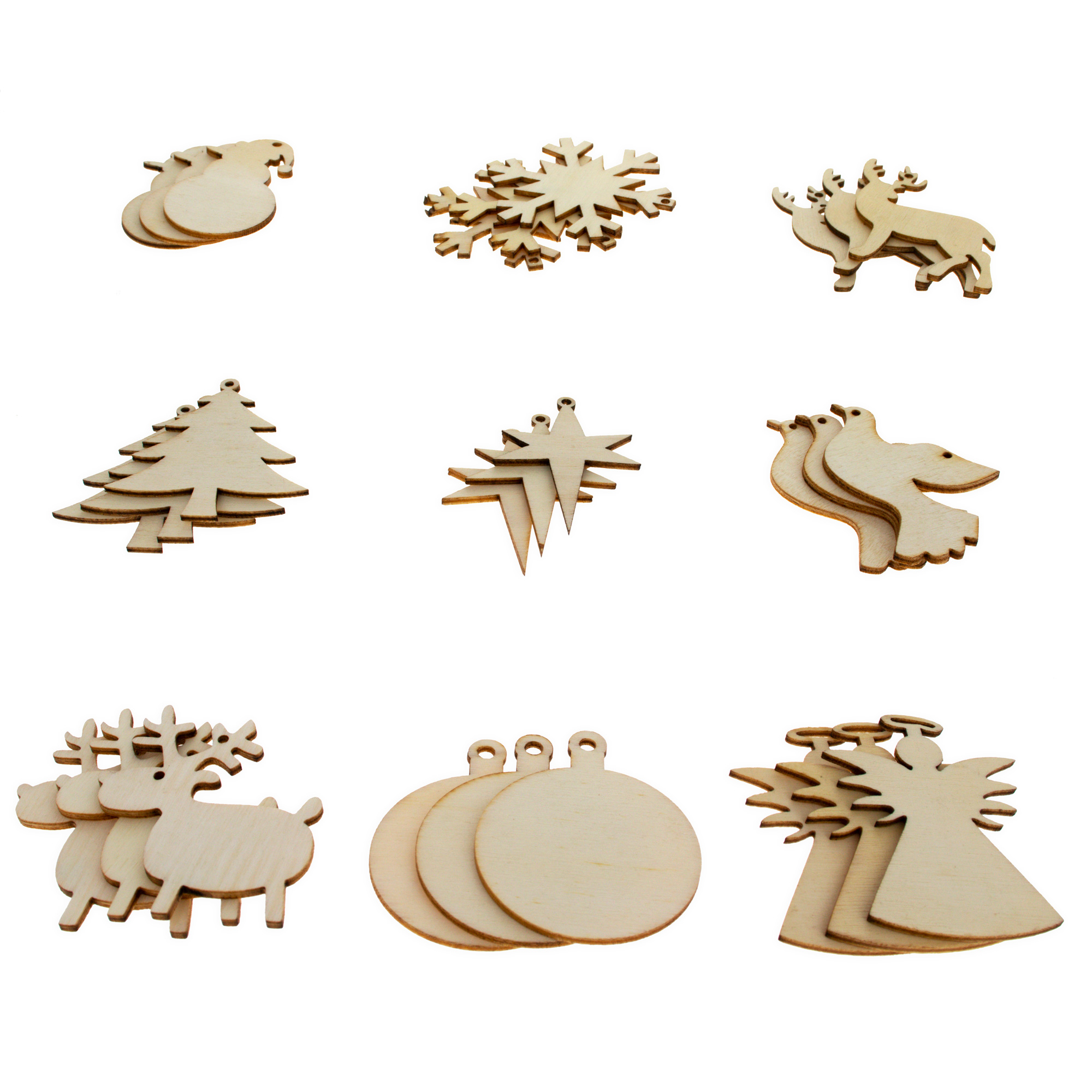 BESTPYSANKY Festive Creativity: Set of 9 Wooden Christmas Shape Cutouts