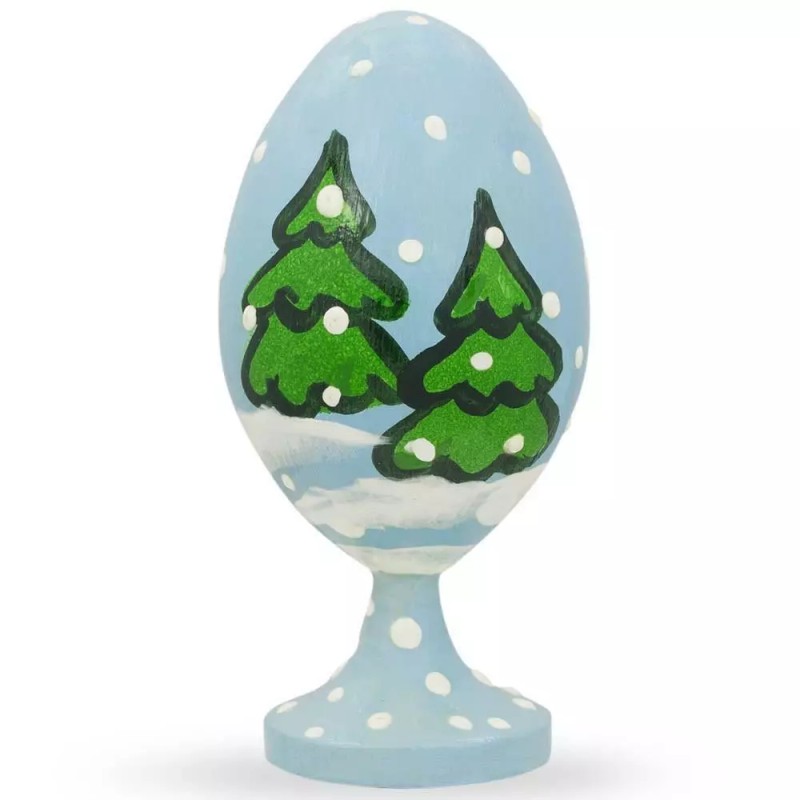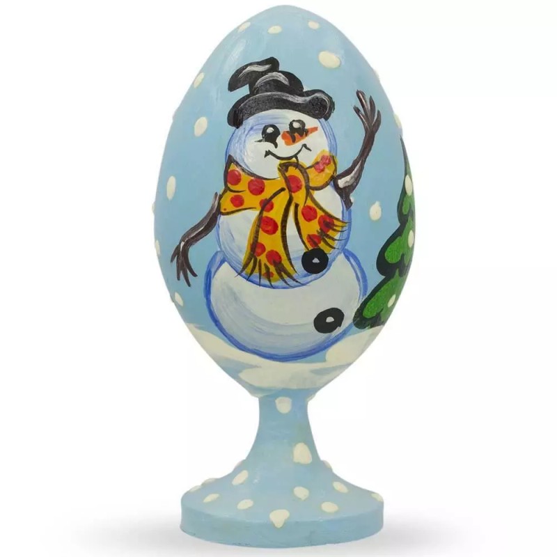 This beautiful hand painted egg figurine depicts a smiling snowman with Christmas trees in the back. A skilled artist makes this beautiful egg stand out, making it a perfect gift for Christmas or Winter decoration.