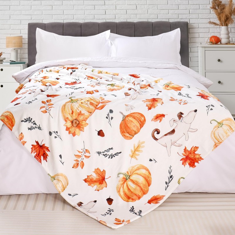 - Unique Design: The autumn throw blanket has a beautiful maple leaves, puppy, pumpkin pattern on the front, showing the colorful style, bringing a unique fall view to your home.