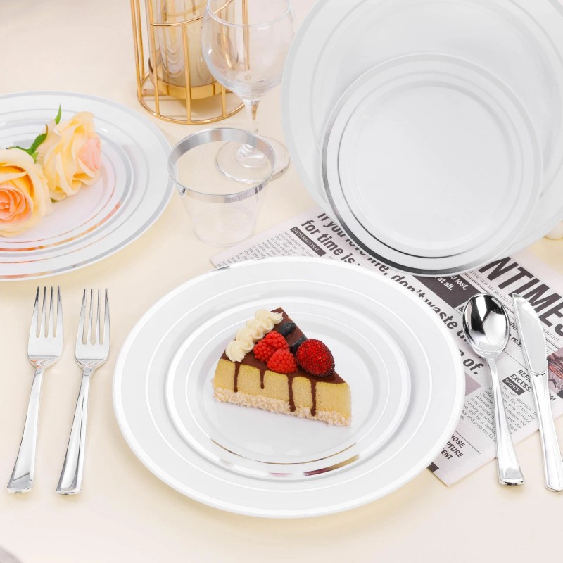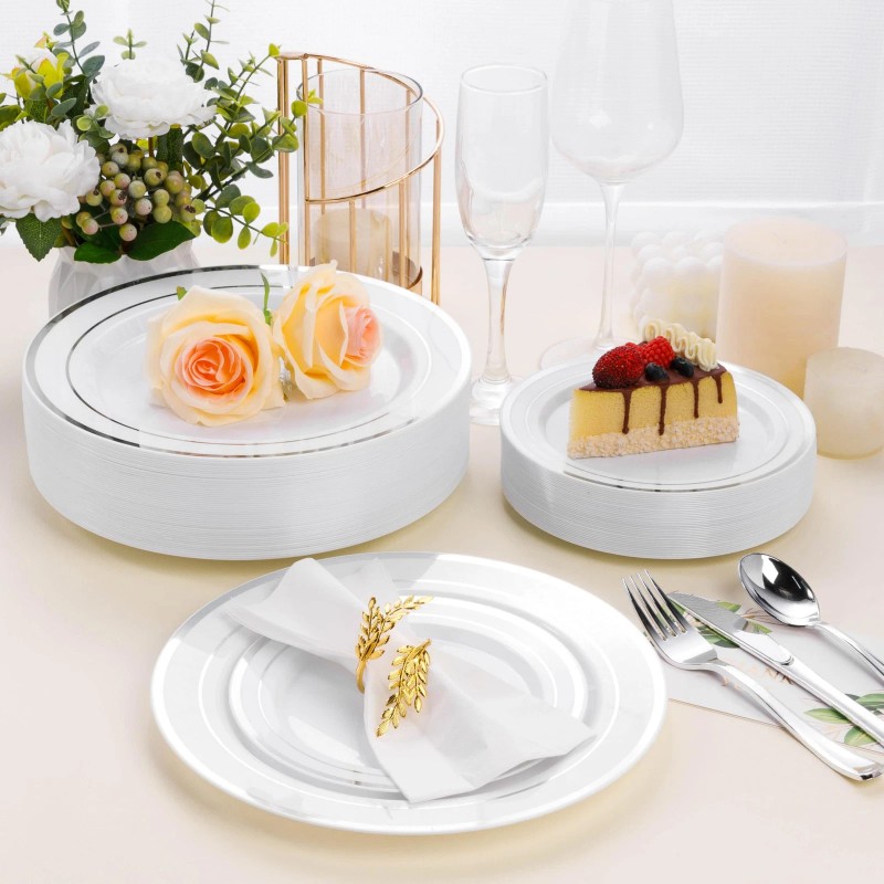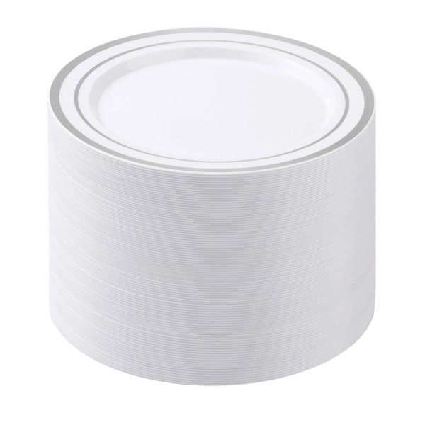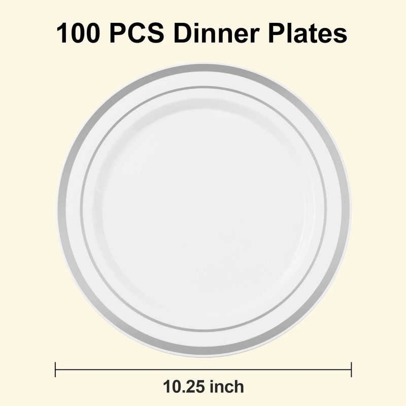 BESTSTAR 100PCS White Plastic Plates for Party, 10.25 Inch Disposable Plates ...