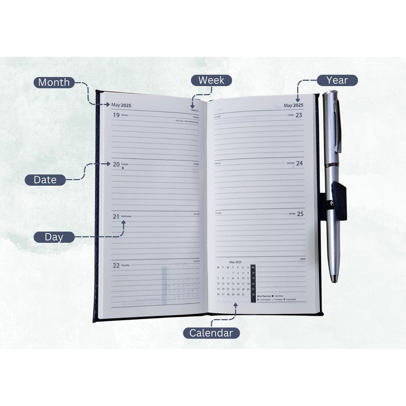 - Durable Slim Leather Feel: Crafted with premium leather-like material, this 2025 diary is both stylish and durable. The hardback design ensures longevity, making it the perfect companion for daily planning and a reliable 2025 pocket diary. Durable for daily wear and tear.