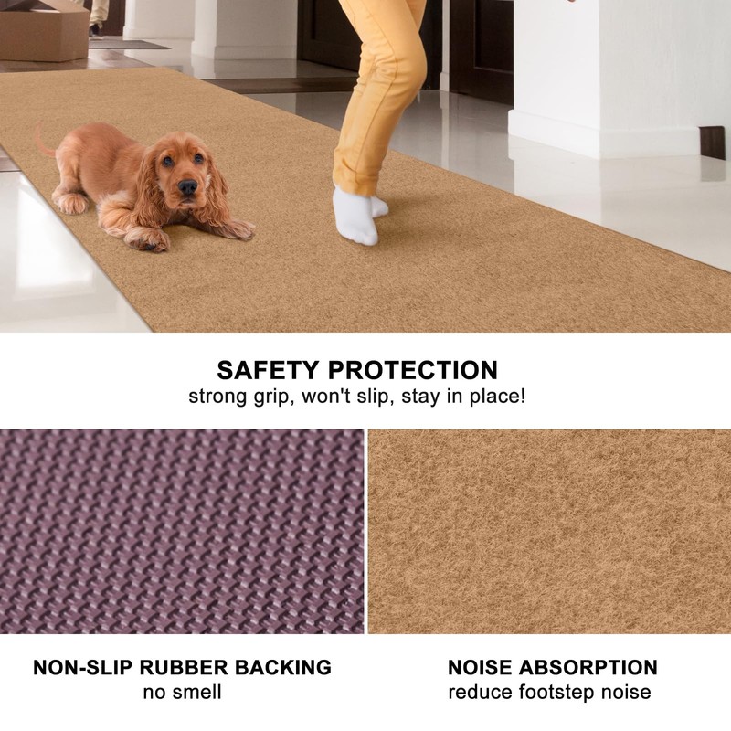 - [Long-term Durability Guarantee]: Carpet runners are composed of a variety of high-quality materials. The carpet retains the softness of polyester fiber and the durability of other fibers, come with excellent stain resistance, not easy to fade. Suitable for entryway, hallway, porch, kitchen, bedroom, laundry room, indoor front, deck, balcony, garage...