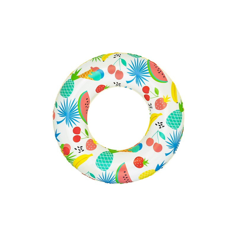 - INFLATABLE SWIM RING: is the perfect pool toy for your little one to feel safe in the pool. Designed for kids who are wanting to experience pool but can’t be in the water on their own yet, this swim float is supportive while still being fun. The design is tropical and ideal for holiday