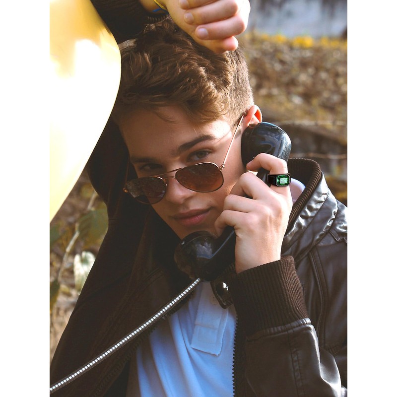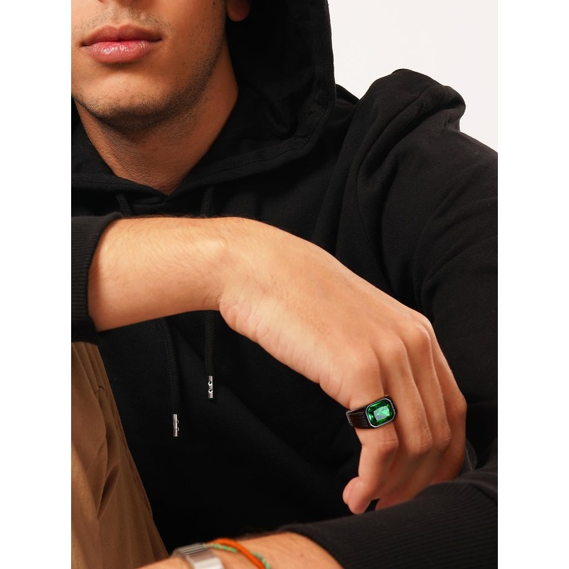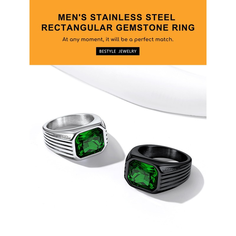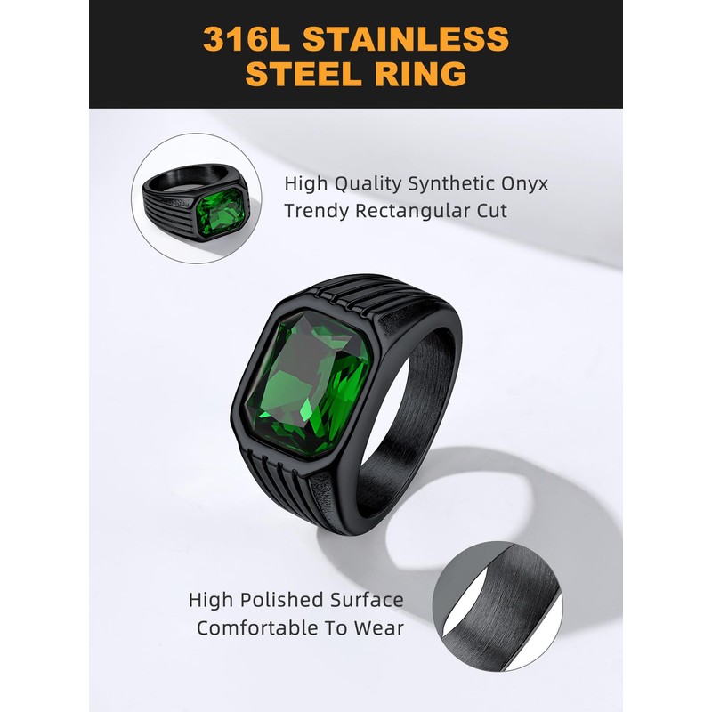 Bestyle Cool Black Classic Green Emerald Square Signet Ring With Agate Gemstone for Men - Retro Thumb Pinky Ring, Size 8