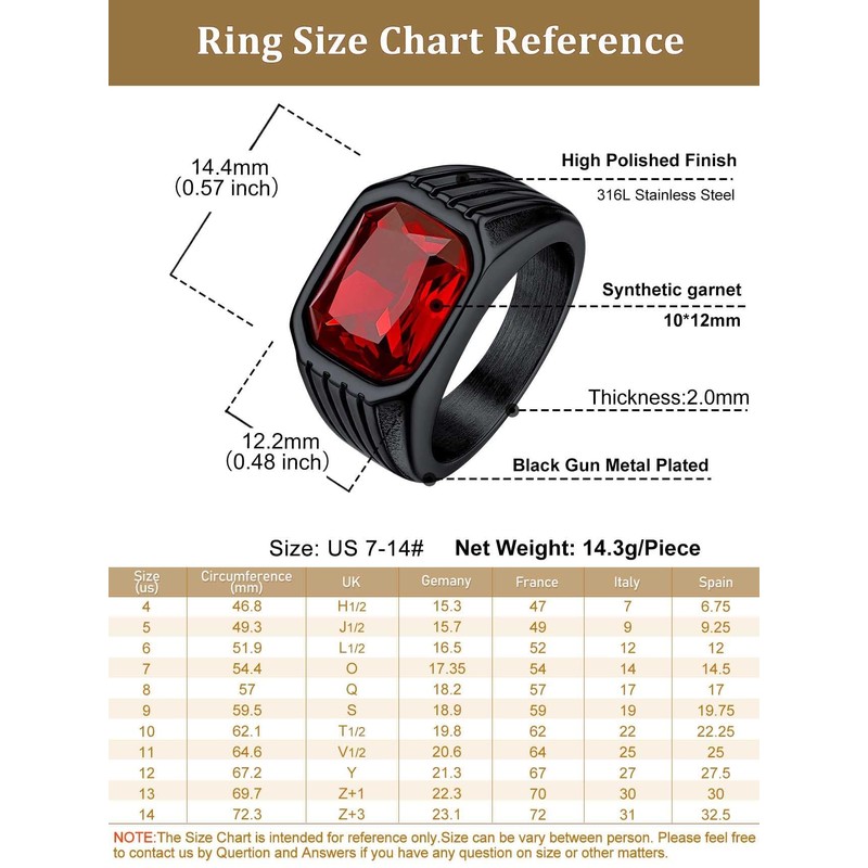 - 💓Rings for All Age💓 Gemstone: Synthetic Black Onyx/Emerald/ Sapphire/Ruby. Color: Silver/Black. US Size: 7/8/9/10/11/12/13/14 .This gothic ring is designed for everyone and every age. Check the Ring Size Chart before you choose size.
