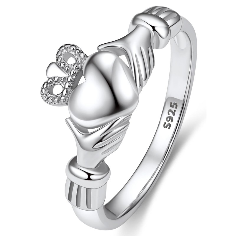 - 💓Silver Love Claddagh Ring💓 The silver band elegantly folds into two hands holding a heart . A crown for loyalty sits above the heart. This beautiful ring with hands embracing the heart is a powerful symbol of love and loyalty. The ring was worn as a wedding ring for centuries because its style and meaning.Give this ring to your Mom/ Wife/ Daughter/ Girlfriends to make a love statement.