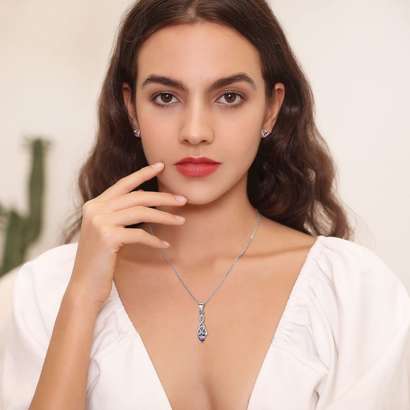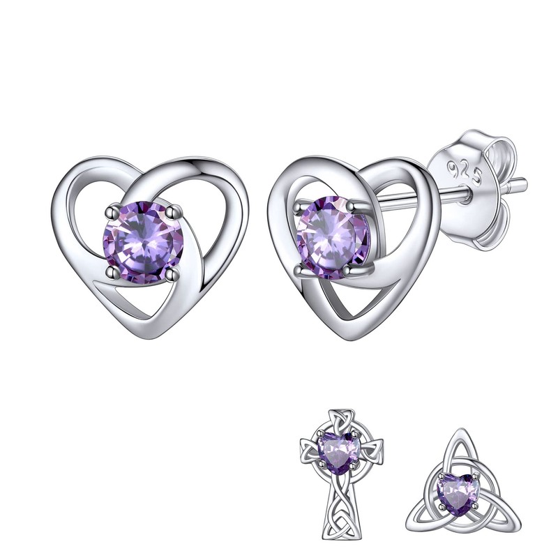 Bestyle Sparkle Synthetic Alexandrite Crystal Stud June Birthstone Earring Sterling Silver Heart Celtic Knot Stud Gemstone Earrings Classic Elegant Women Silver Earrings
