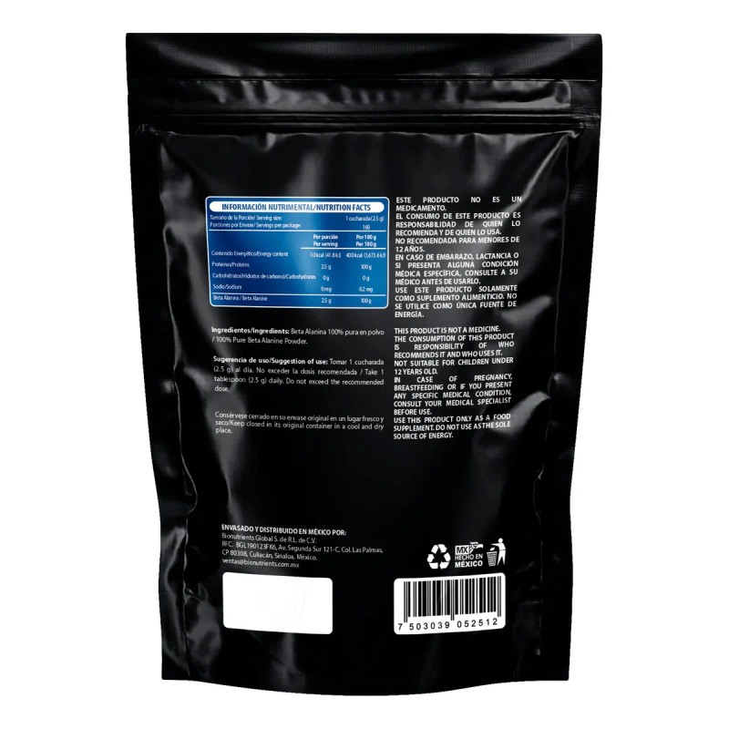 Las instrucciones de dosificación específicas se encuentran en el empaque del producto. Generalmente, la Beta-Alanina puede causar una sensación de "hormigueo" o parestesia, que es inofensiva y disminuye con el uso continuado. Este producto es un suplemento alimenticio y no debe considerarse un reemplazo de una dieta equilibrada y un estilo de vida saludable. Se aconseja consultar a un profesional de la salud o un nutricionista antes de incorporar cualquier suplemento a su régimen, especialmente si tiene condiciones de salud preexistentes o está tomando otros medicamentos.