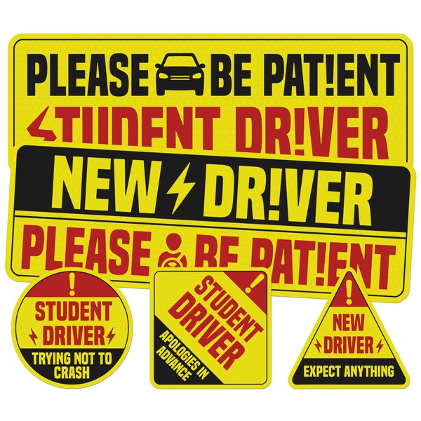 BETANAS Student New Driver Stickers Pack 3 Pieces vinyl Waterproof UV Printed, Small funny Car Sticker Decal for Men Women gift Birthday Graduation Sign for Cars Windows