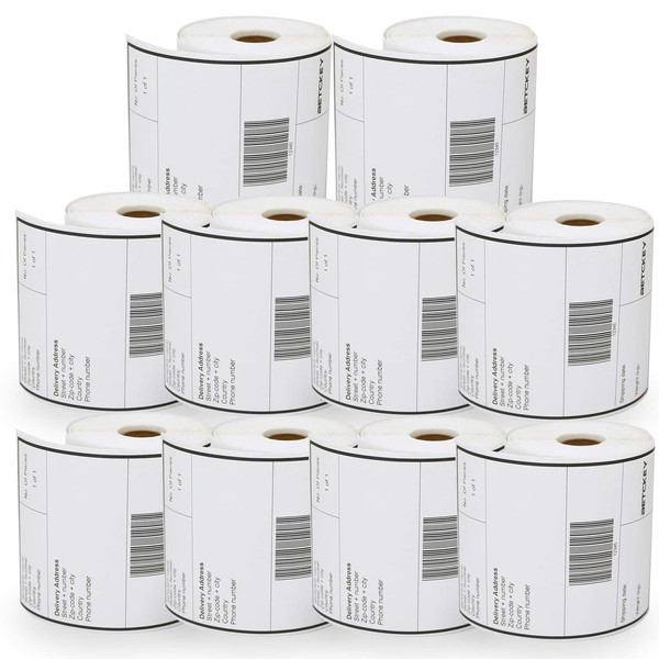 BETCKEY - Compatible DYMO 1744907 (4" x 6") Shipping Labels, Removable & Perforated, Compatible with Rollo, DYMO 4XL & Zebra Desktop Printers[10 Rolls/2200 Labels]