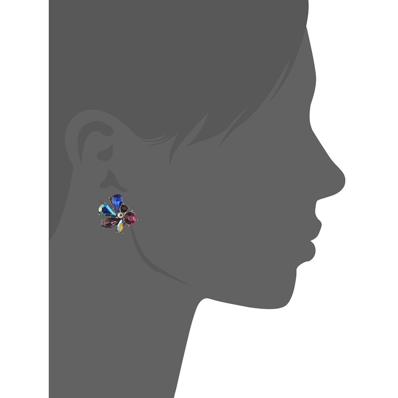 Betsey Johnson button earrings featuring mixed multi-colored stone cluster set in gold-tone metal with a post back closure.
