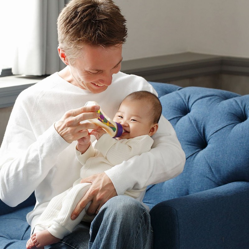 - 母乳授乳と同じ、赤ちゃんが最も飲みやすい姿勢で飲むことができる哺乳びんです。