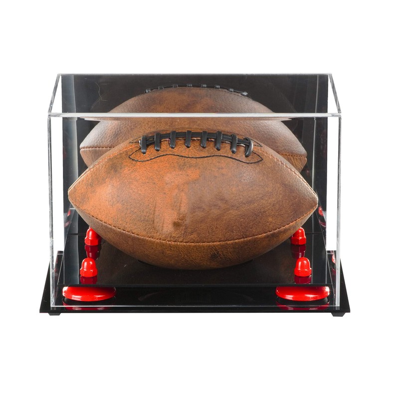 - JET BLACK acrylic two-tiered base with red metal risers; perfect for displaying any miniature football