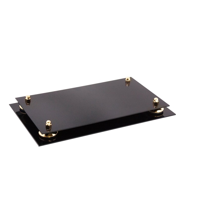 - JET BLACK acrylic two-tiered base with gold metal risers, perfect for displaying your collectible baseball or softball catchers glove or mitt