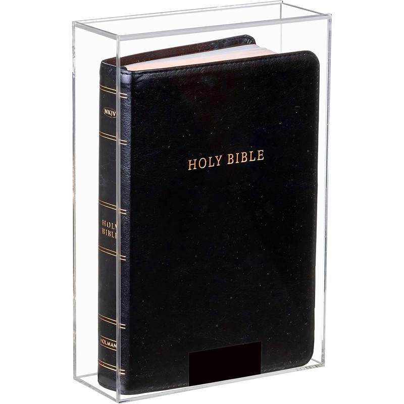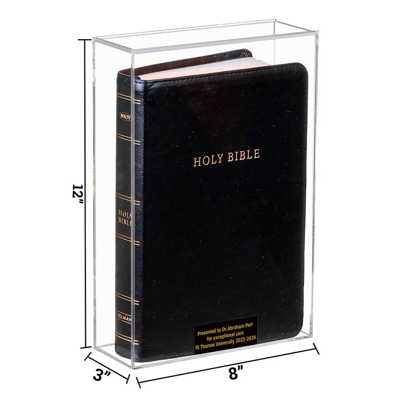 Better Display Cases Clear Acrylic Book Display Case 8" x 3" x 12" with Custom Name Plate and Clear Back Table Top - (BK01/A051)