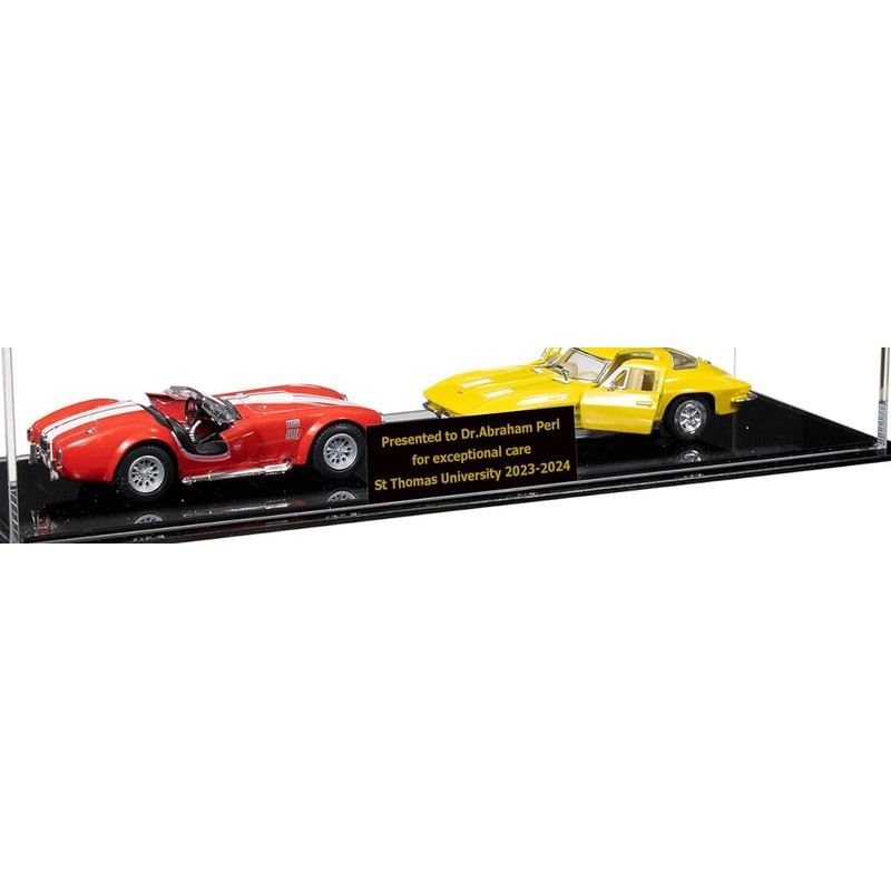 Better Display Cases Small Clear Acrylic Model Cars Display Case with Custom Name Plate and Black Base (A127)