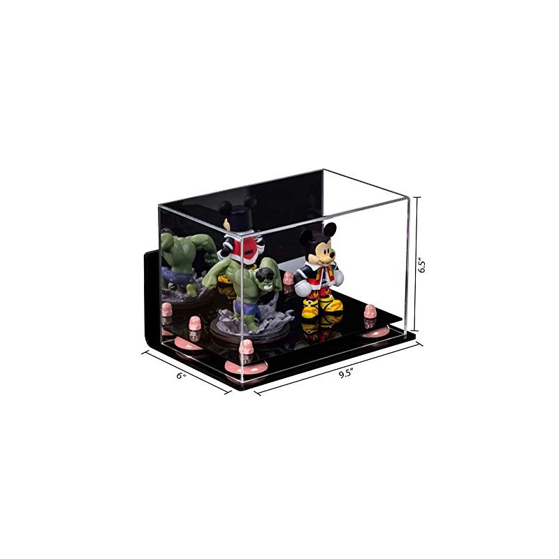 Better Display Cases Versatile Acrylic Display Case - Small Rectangle Box with Mirror, Pink Risers, Wall Mount and Black Base 9.5" x 6" x 6.5" (A005, V43)