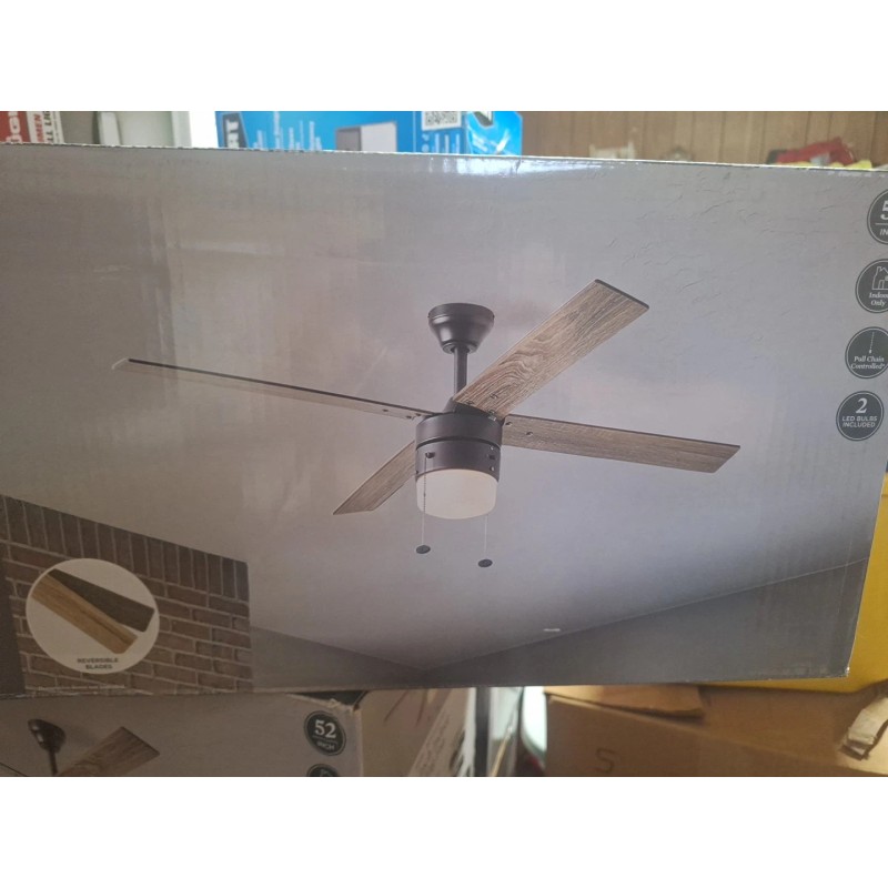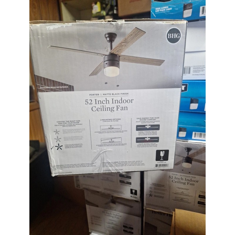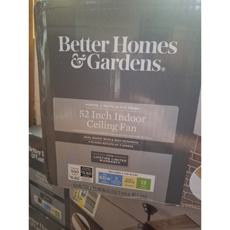 Better Homes & Gardens 52" MATTE Black Ceiling Fan with Light 3 Speed LED Bulbs INCLUDED 4 Blades Rever