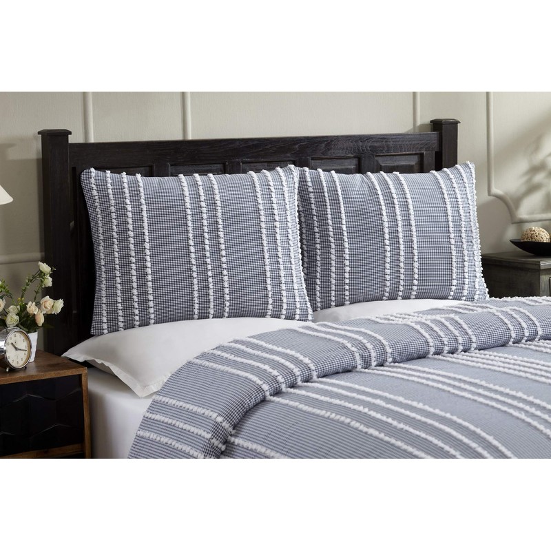 This stunning Winston Collection of comforters is made of 100% Cotton shell and 100% Polyester fill. Its Chenille Tufted into Stripes Design. This collection of comforter set is available in 2 colors and 3 sizes. Twin Size Comforter is 68" x 90", Full/Queen Size Comforter is 90" x 90" & King Size Comforter is 104" x 90". Standard Sham Size is 20" x 26" & King Sham Size is 20" x 36". Twin size comforter set includes one standard size sham, Full/Queen size comforter set includes 2 standard size shams & King size comforter set includes 2 king size shams.