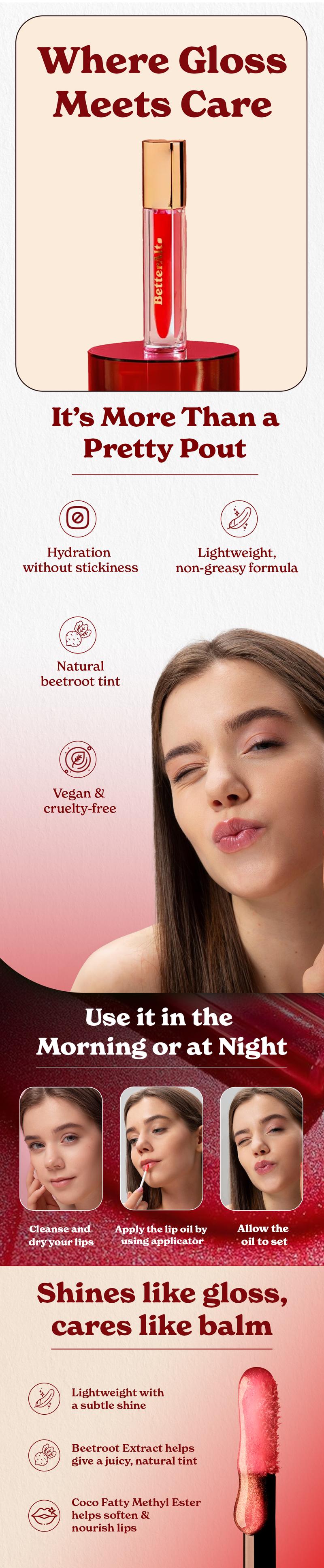 BetterAlt Tinted Lip Oil | With Beetroot Extract | Helps Soften & Hydrate Lips | Topical Product - 5 ml