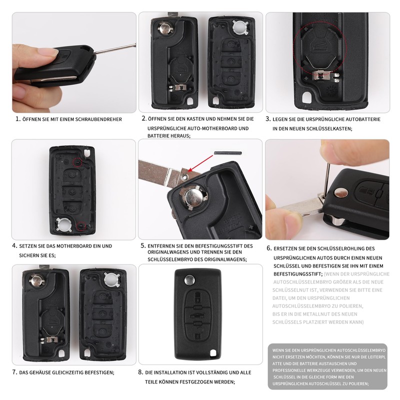 - Please note: it is advisable to look at the shell in the picture carefully so as not to have any incompatibility problems. Inside there is no remote control/electronics/transponder chip/battery, this remote control only includes the housing body and the new blade key.