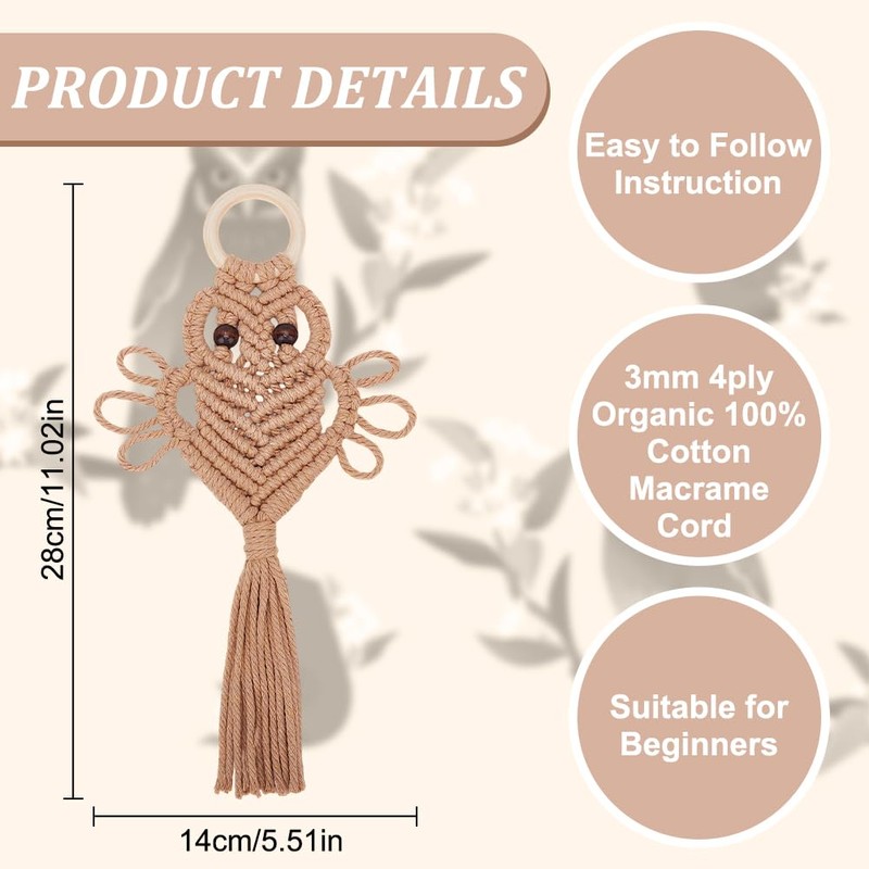 • Geeignet für Anfänger:Unser aussagekräftiges Eulen-Makramee-Set mit Schritt-für-Schritt-Anleitung. Dieses einzigartige Makramee-Set wird mit einer leicht verständlichen gedruckten Anleitung geliefert.. Für alle Fähigkeitsstufen geeignet und ein Vergnügen, da sie mit leicht verständlichen Schritt-für-Schritt-Anleitungen und Bildern geliefert werden.