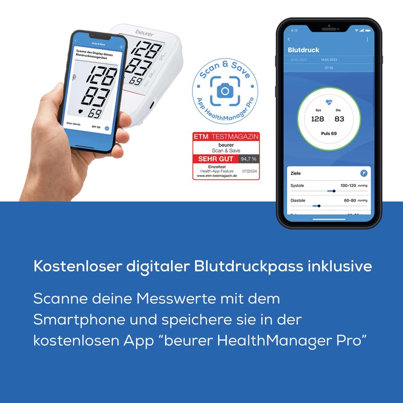 - Quick and gentle measurement: the blood pressure measurement with the BM 38 is already done when inflating the device and thus offers you a faster and much more comfortable measurement