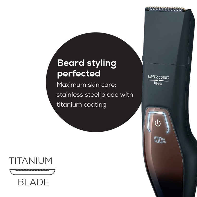Beurer HR4000 Barbers Corner Beard Styler | 4 attachments for Trimming and Shaving at Various Lengths | Titanium-Coated Stainless Steel Blade is Kind to Skin | Quick-Charge Function | LED Display "