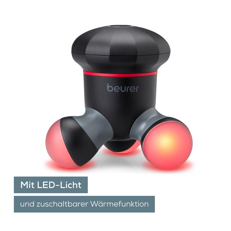 Beurer MG 18 Mini Massager, Electric Handheld Massager for Gentle Vibration Massager, Ideal for Back, Neck, Arms and Legs, Switchable Heat Function, with LED Light, Portable Black