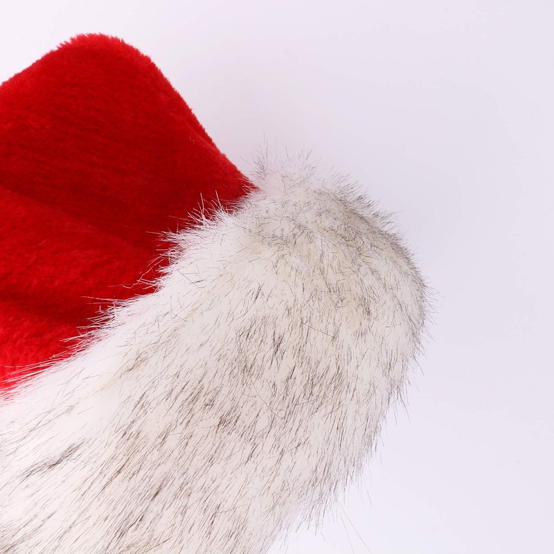 - Deluxe Plush Santa Hats with a little grey Artificial Hair, Unique Design! Perfect for most adult and Children and High School Boys and Girls, Great For Holiday Costume Parties! Fun costumes for big kids or adults