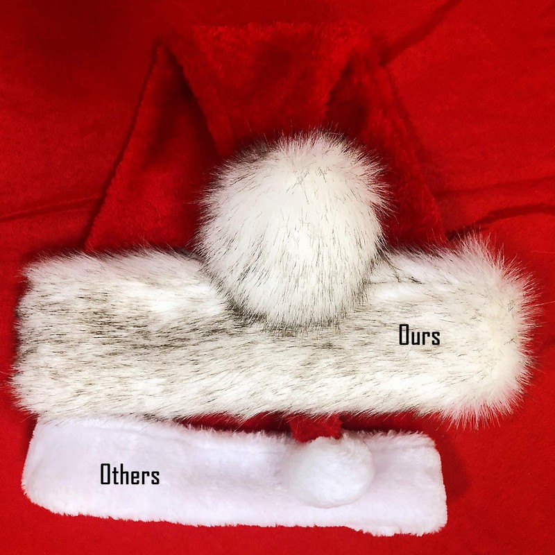 Deluxe Plush Santa Hats with a little grey Artificial Hair, Unique Design! Perfect for most adult and Children and High School Boys and Girls, Great For Holiday Costume Parties! Fun costumes for big kids or adults
