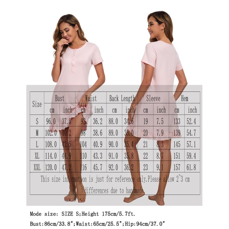 - Stylish Ruffle Hem Design:With its elegant ruffle hem, this short sleeve summer nightgown not only looks cute but also allows for easy movement, making it a perfect choice for loungewear or as a labour nightwear piece