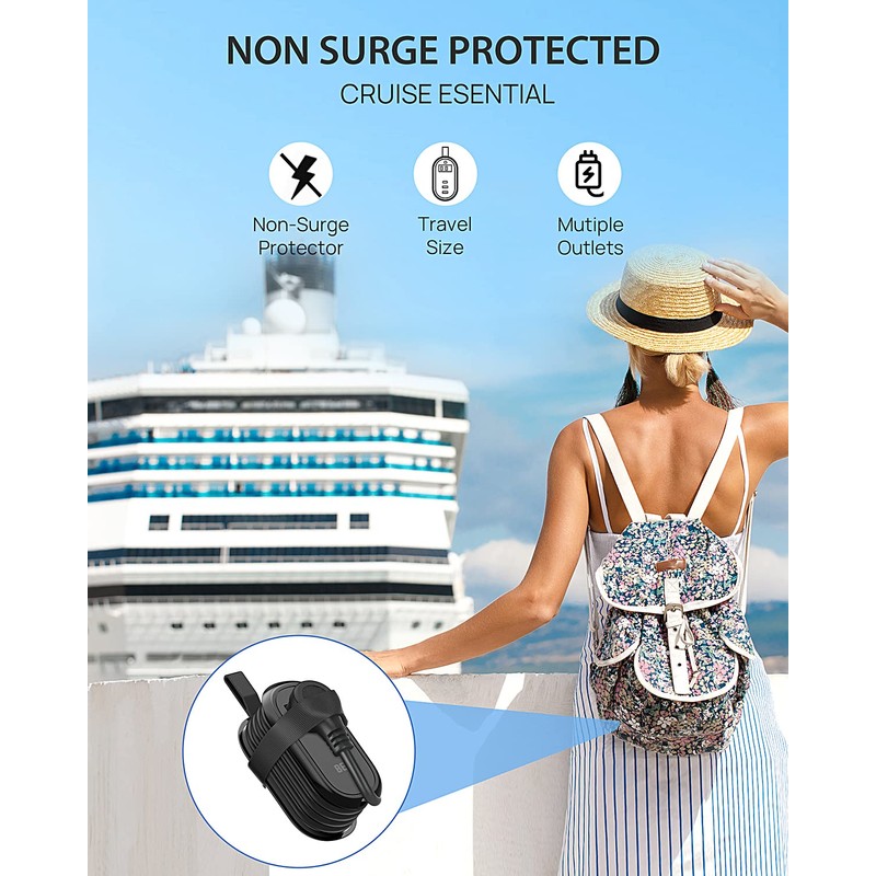 - 【Cruise Accessories Must Haves】This cruise power strip comes with No surge protection, makes it absolutely a must have Home and cruise essential. Extension cord can be skillfully wound around the equipment and inserted into the AC outlets for convenient storage. The silicone handle and silicone straps are designed to facilitate travel and do not take up too much space.