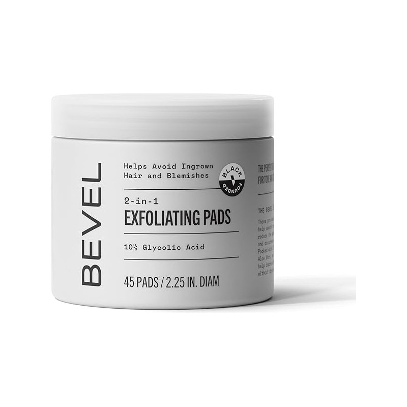 Bevel 10% Glycolic Acid Toner Pads for Face, Helps Remove Dead Skin Cells and Reduce Ingrown Hairs for Even Skin Tone and Texture, 45 Count (Packaging May Vary)